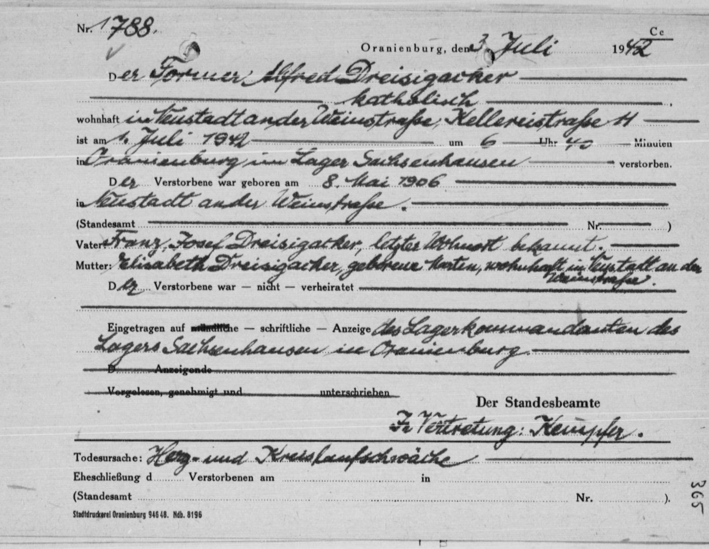 Alfred Dreisigacker wurde am 8. Mai 1906 in Neustadt an der Weinstraße im heutigen Rheinland-Pfalz geboren und katholisch