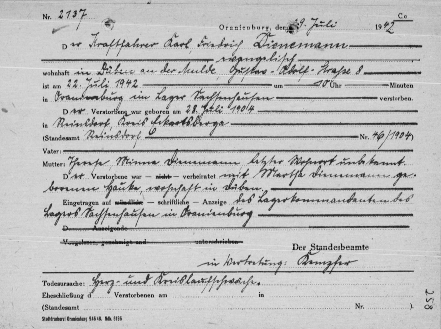Letzter Wohnort: | Düben, Gustav-Adolf-Straße 8 | |