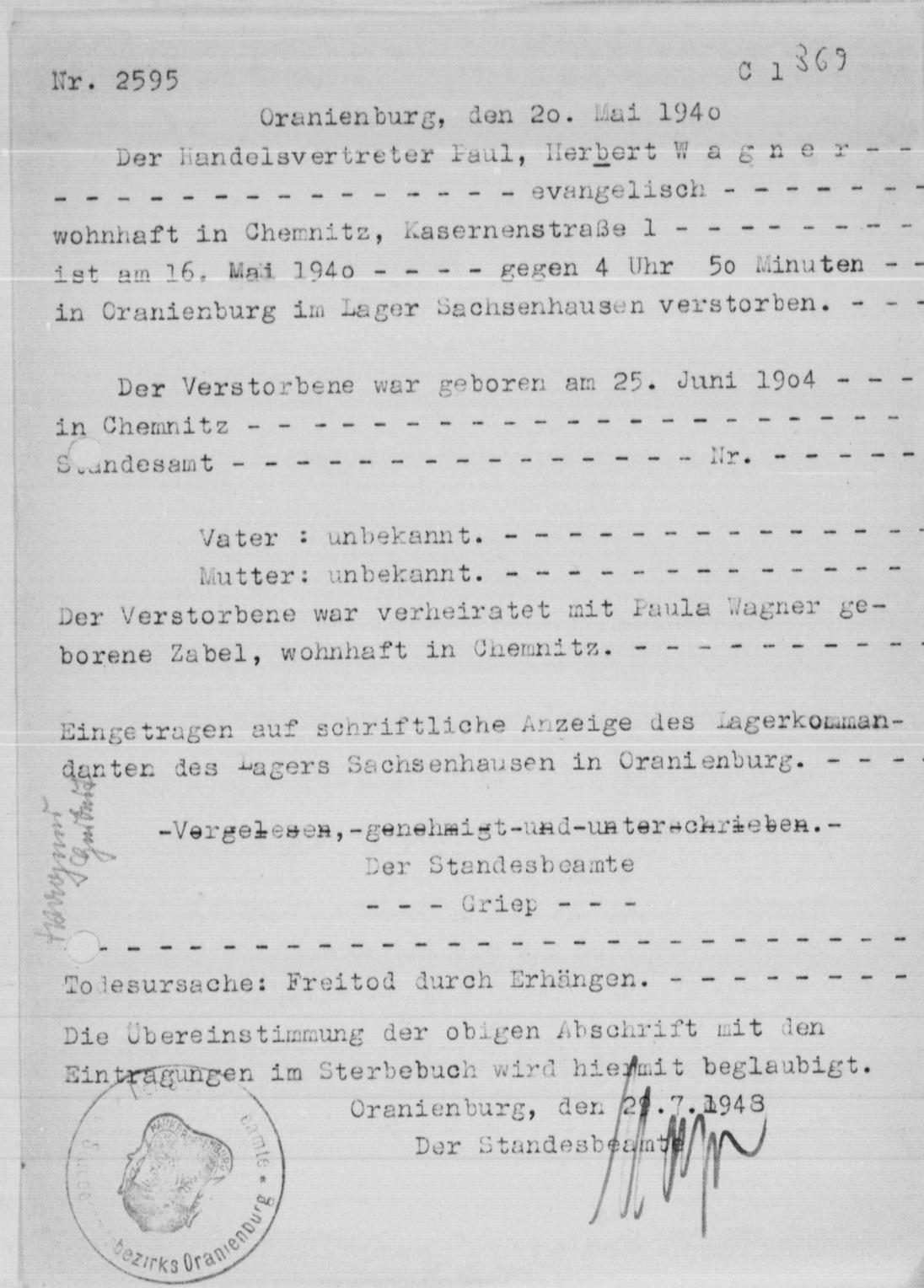 Herbert Paul Wagner wurde am 25. Juni 1904 in Chemnitz in Sachsen geboren und evangelisch getauft. Gemeinsam