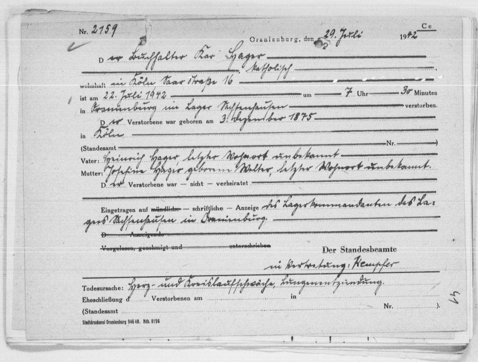 Der Ledige wohnte auch später in Köln, zuletzt in der Saarstraße 16, und war von Beruf Buchhalter und Kaufmann.