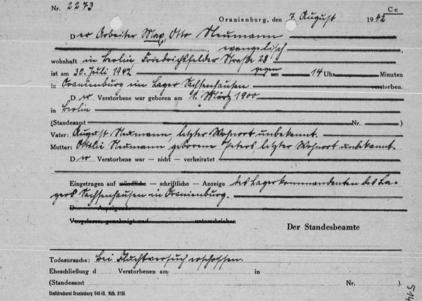 Letzter Wohnort: | Berlin O 17, Friedrichsfelder Straße 28 〉 (Die Straße existiert nicht mehr) | |